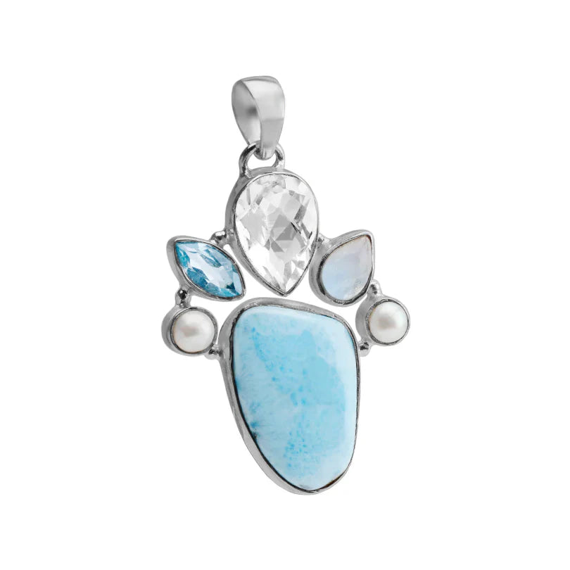 Stones: Blue Topaz, Fresh Water Pearl, Larimar, Moonstone, Quartz